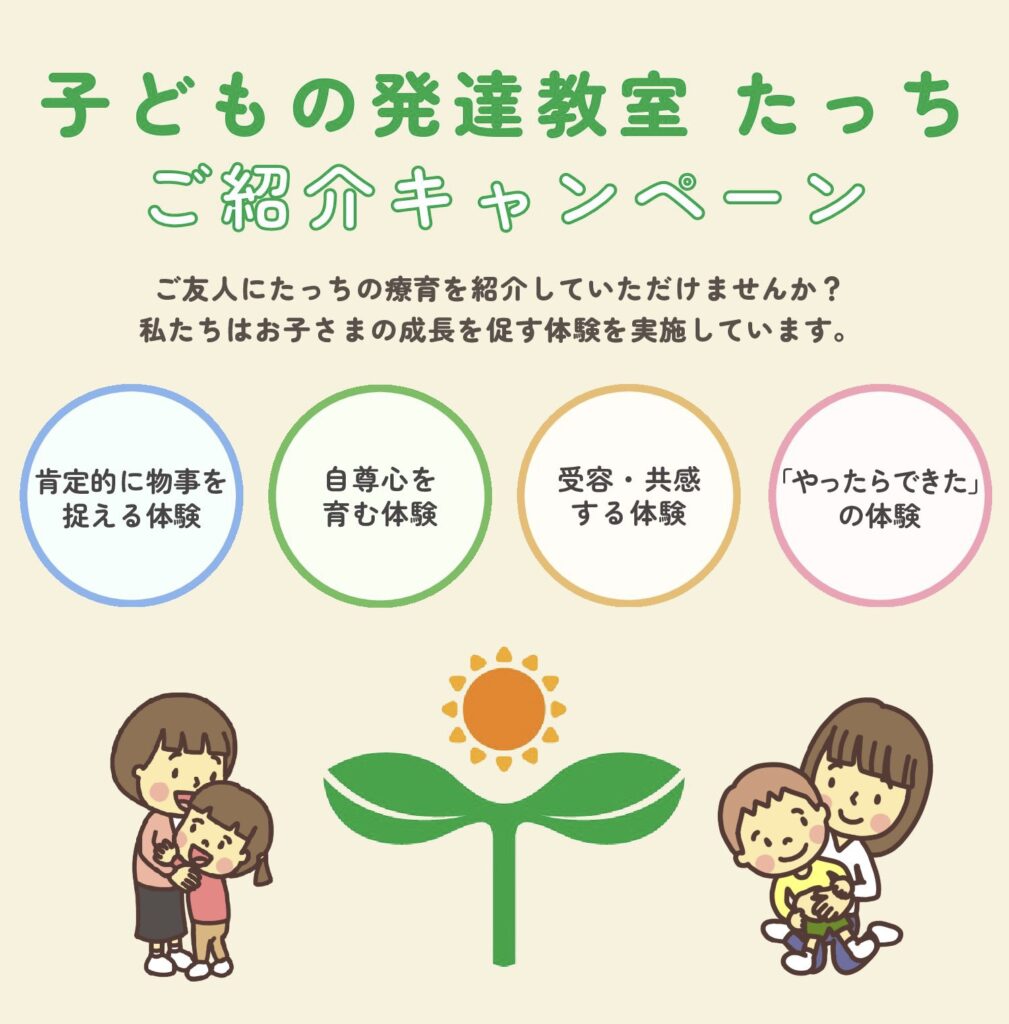 子どもの発達教室たっちでは、ご紹介キャンペーンを初めました。